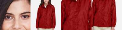 3.4 oz. (US), 5.7 oz/Lyd (CA), 55/45 cotton/polyester Fine yarn count shirting Stain-release and wrinkle-free finish Classic fit Front, back princess seams and bust darts for flattering feminine fit Straight collar with pearlized buttons Patented pucker-free taped seams Specially fused collar, cuffs and placket Split back seam with bias cut back yoke