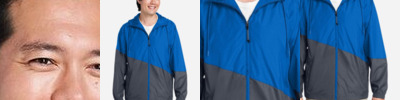 2.3 oz./yd²/78 gsm (US), 3.8 oz./L yd (CA), 100% 240T polyester pongee Unlined Water-resistant finish Chin guard Elasticized cuffs Underarm vents Adjustable shockcord at hem Center front reverse coil autolock zipper with reflective toggle Lower front concealed zippered pockets with reflective toggles Reflective piping at shoulder yoke and center back yoke Audio port access through inside lower left pocket
