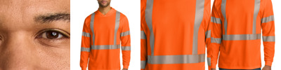 4.1-ounce, 100% polyester birdseye mesh UPF rating of 30 Hat- and helmet-compatible 3-panel hood Segmented, durable, reflective 2-inch tape meets ANSI 107 requirements and provides 360-degree visibility on body and easy movement Rib knit cuffs
